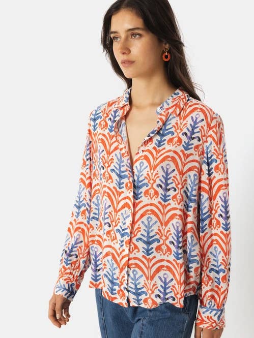 Add a splash of fun to your wardrobe with this long-sleeved shirt featuring a lively abstract pattern. The buttoned cuffs and front button fastening let you mix and match your look with ease, making it perfect for playful days and casual outings. Embrace your unique style with this colorful, eye-catching shirt!
