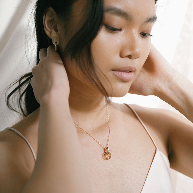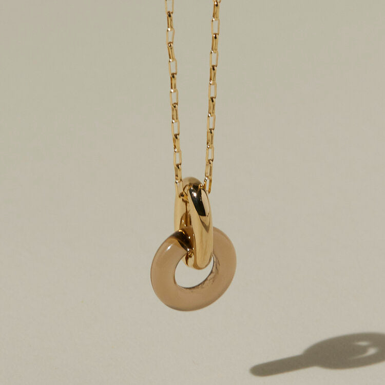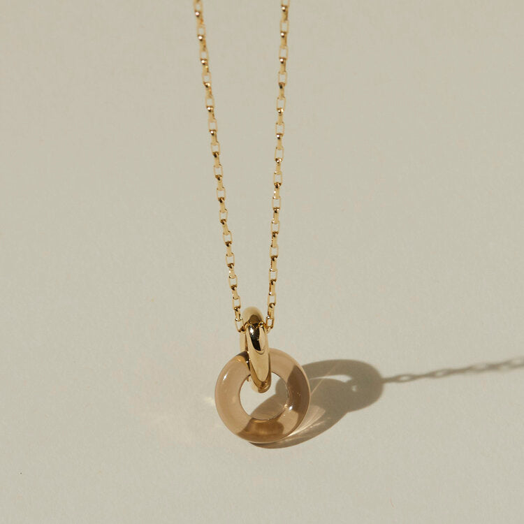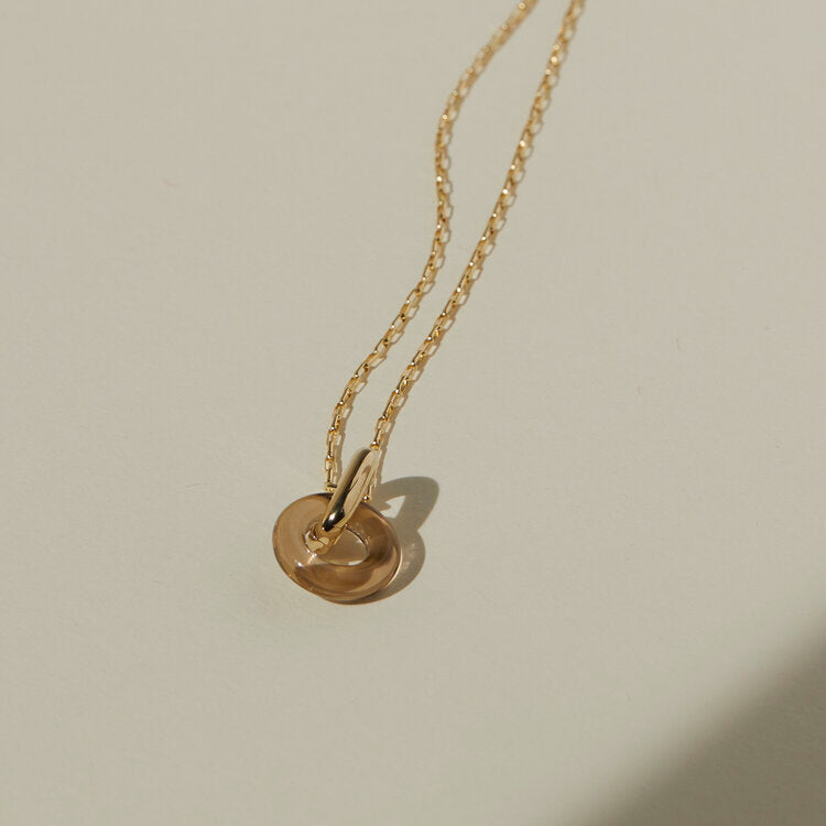 A modern staple that goes with everything! A hand cast and polished oval link coupled with a translucent, neutral beige glass ring. You can choose your chain length to fit perfectly with other layering necklaces or wear it solo.