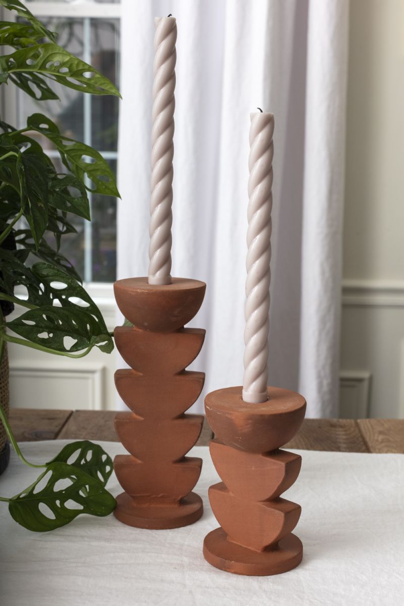 As sculptural as a work of art, the Cadwell Candleholder is a stacked half-moon design in natural terracotta. A modern yet natural way to show off your taper candles and add warm style to the home.