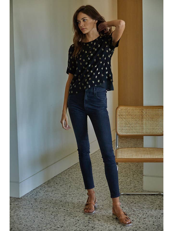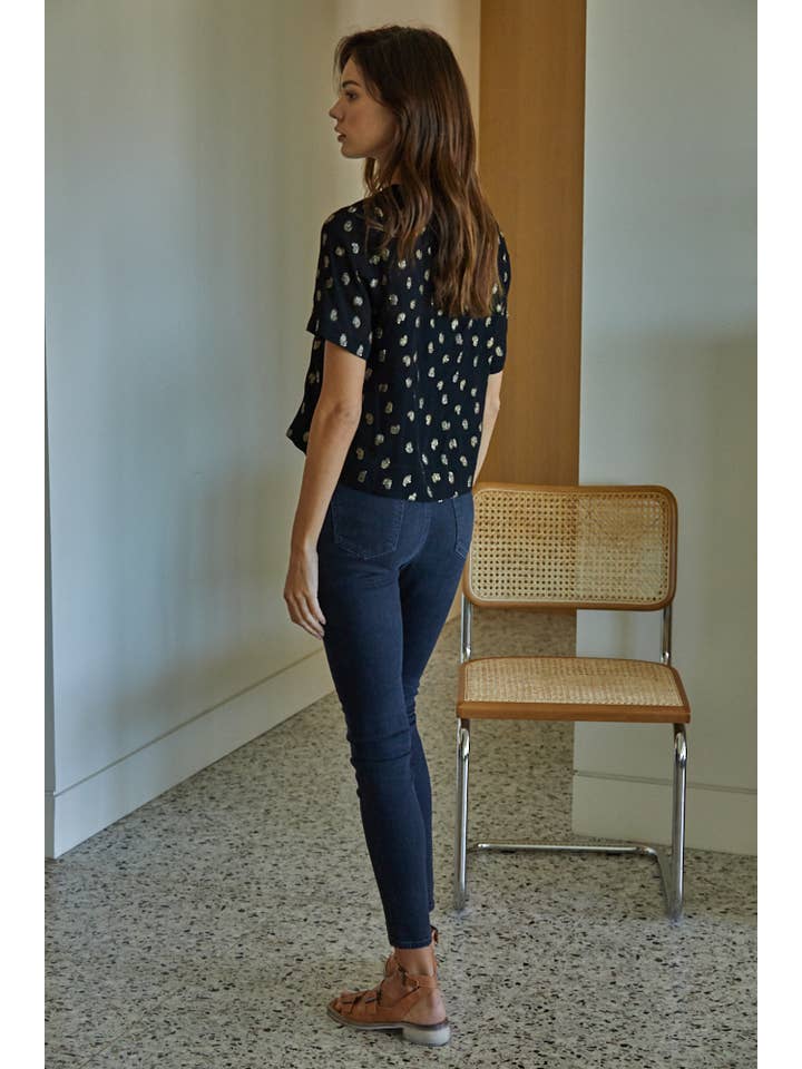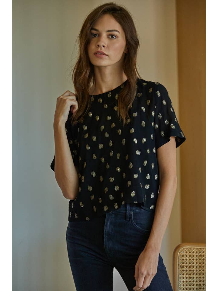 Introducing the Cameron Silk Shirt in black! This round neck short sleeve top is the ultimate versatile piece, with a cami lining for added comfort. Made from 100% silk, it's perfect for transitioning from the office to a night out.