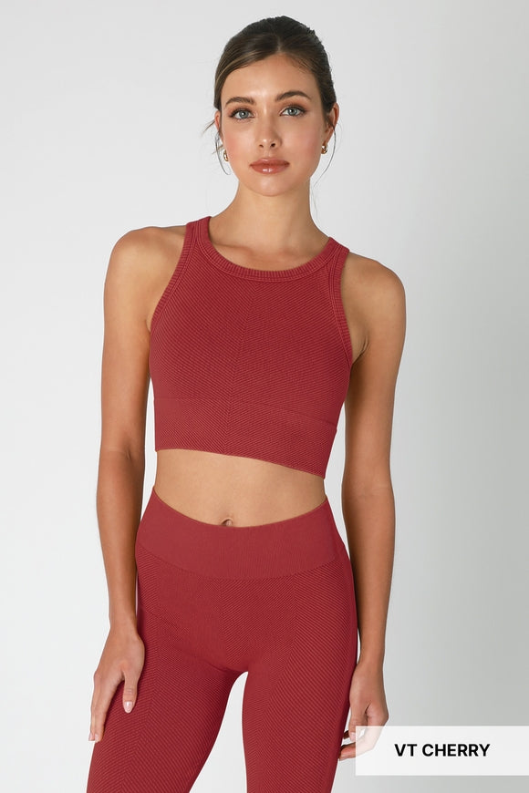 Step up your everyday essentials game with the Chevron Highneck Crop Top! This one-size-fits-all top is the perfect addition to your wardrobe, and a must-have layering piece for a cute, casual look that can take on any adventure. Get ready to have all eyes on you. (Trust us, you won't want to miss out on this!)