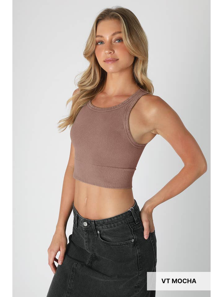 Step up your everyday essentials game with the Chevron Highneck Crop Top! This one-size-fits-all top is the perfect addition to your wardrobe, and a must-have layering piece for a cute, casual look that can take on any adventure. Get ready to have all eyes on you. (Trust us, you won't want to miss out on this!)