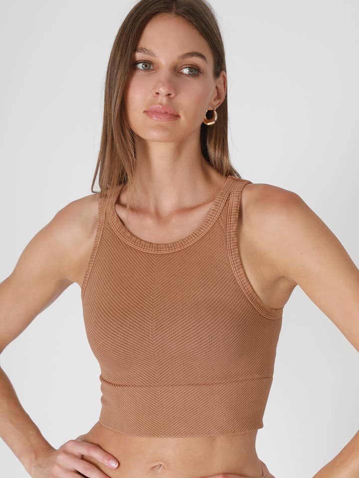 Step up your everyday essentials game with the Chevron Highneck Crop Top! This one-size-fits-all top is the perfect addition to your wardrobe, and a must-have layering piece for a cute, casual look that can take on any adventure. Get ready to have all eyes on you. (Trust us, you won't want to miss out on this!)