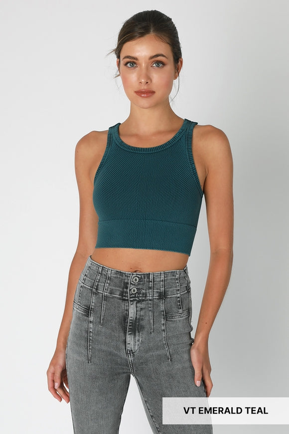 Chevron Highneck Crop Top - Vintage Emerald Teal