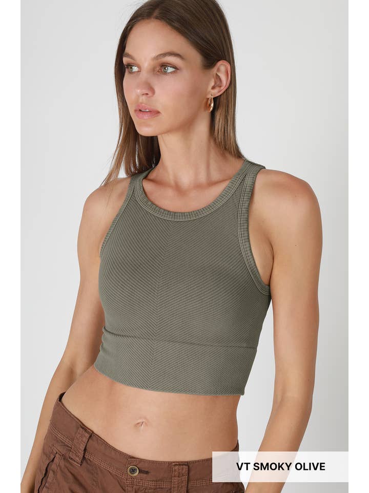 Chevron Highneck Crop Top - Vintage Smoky Olive