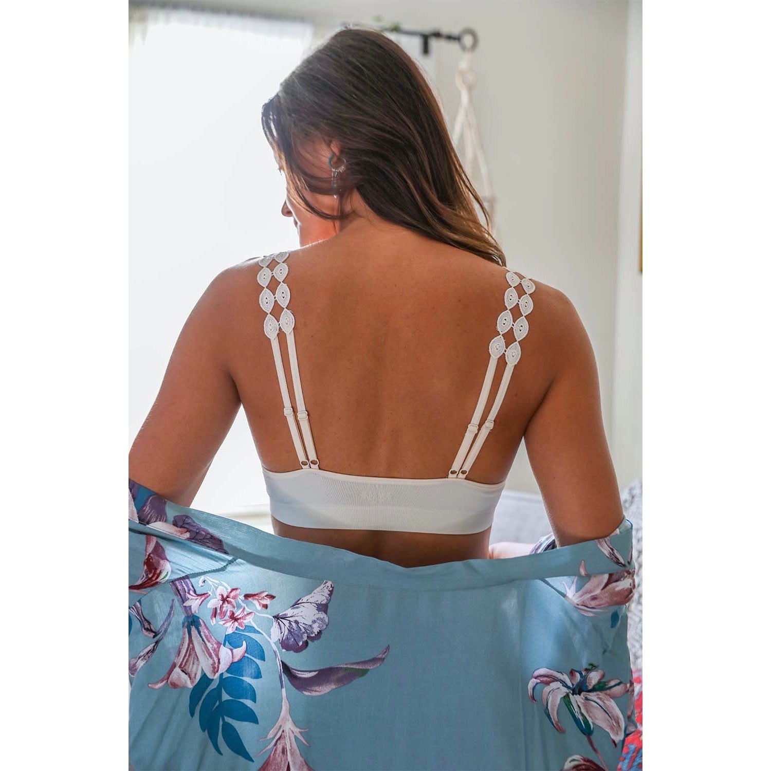This dreamy bralette has all the boho vibes! Featuring stunning eye lace appliques on both the center and straps, it's the perfect foundation to layer under kimonos, off-the-shoulder tops, or flowy caftans.