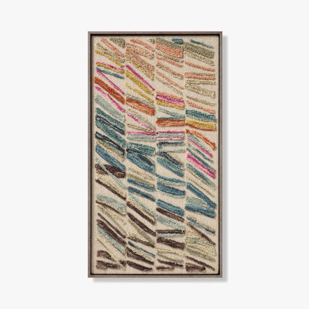 Add some color to your walls with our Gambit Framed Artwork. This woven piece features a vibrant cascade of colors, perfect for adding a playful touch to any room. Pair with the "Swept Up" and "Carried Away" artwork for a statement trio.