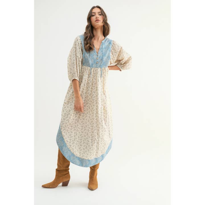 Nature Print Midi Dress - Natural/Blue
