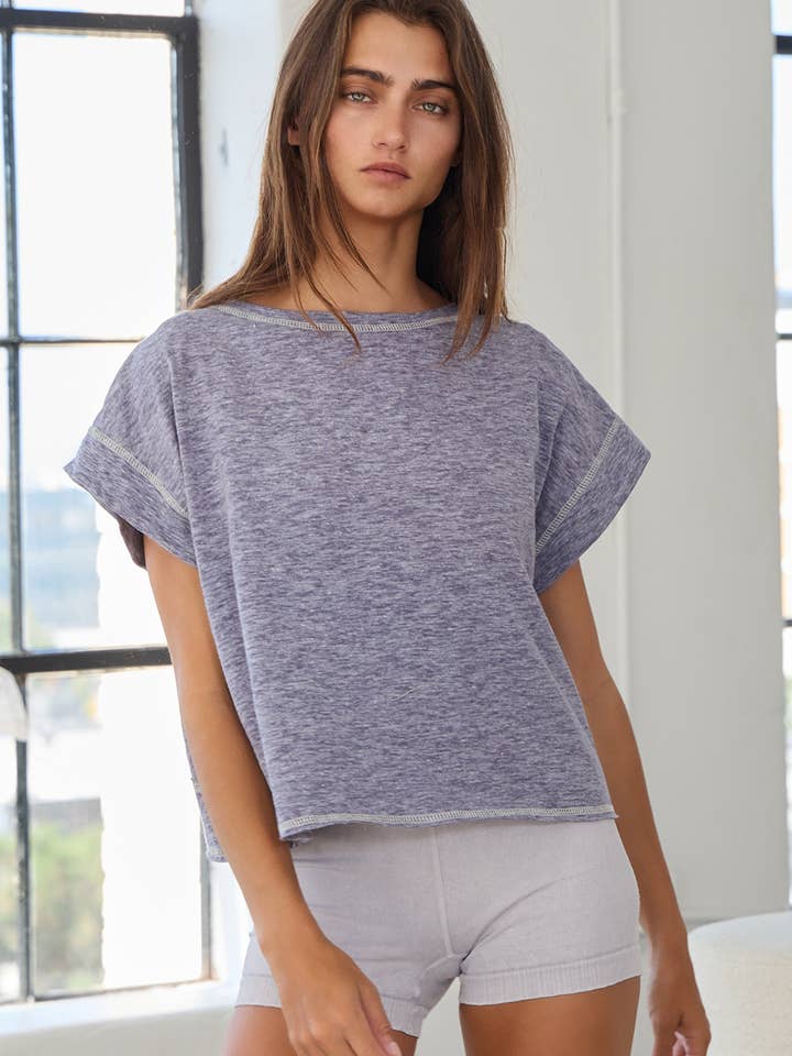Express your playful side with our Overlap Open Back Top. The reverse stitch creates a unique texture while the overlap open back adds a flirty touch. With a relaxed and slouchy silhouette, this cropped top is perfect for effortless comfort and layering.