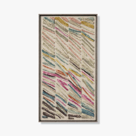 Add some color to your walls with our Swept Up Framed Artwork. This woven piece features a vibrant cascade of colors, perfect for adding a playful touch to any room. Pair with the "Gambit" and "Carried Away" artwork for a statement trio.