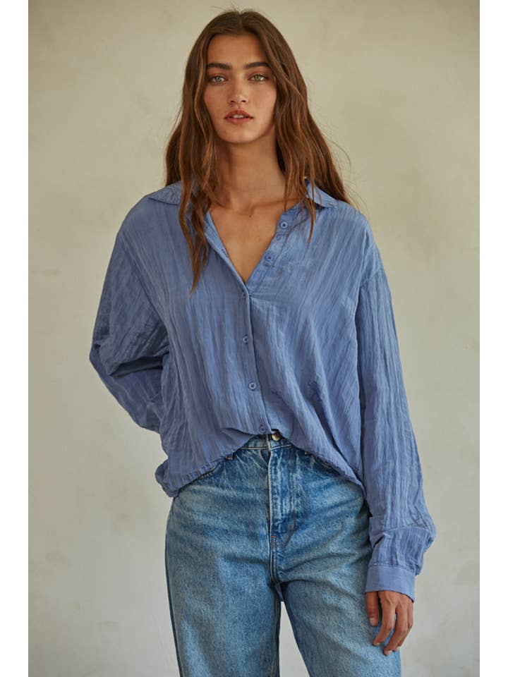 The Brighton Shirt is the perfect combination of style and comfort. With a trendy woven crinkle design, button down collar, and long sleeves, this shirt is perfect for any occasion. Look effortlessly cool and chic in this dusty yellow top.