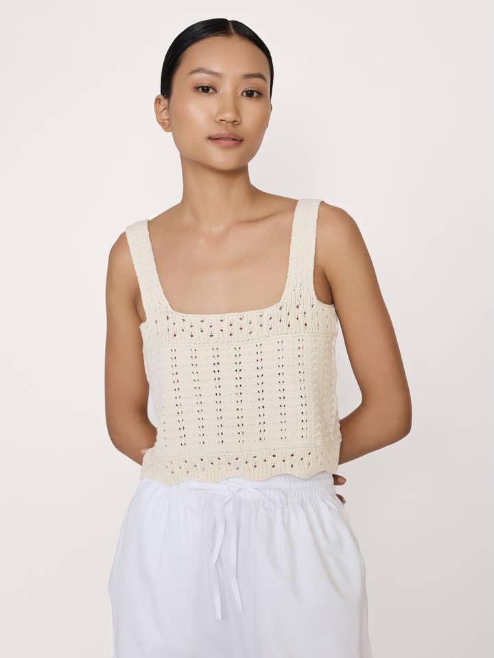 The Lyric Top in Ecru is your new go-to for easy, breezy style with a touch of handmade charm. This crochet knit tank brings a playful twist to timeless luxury, perfect for sunny days or layering up with flair. Slip it on and let the stunning handwork do the talking!