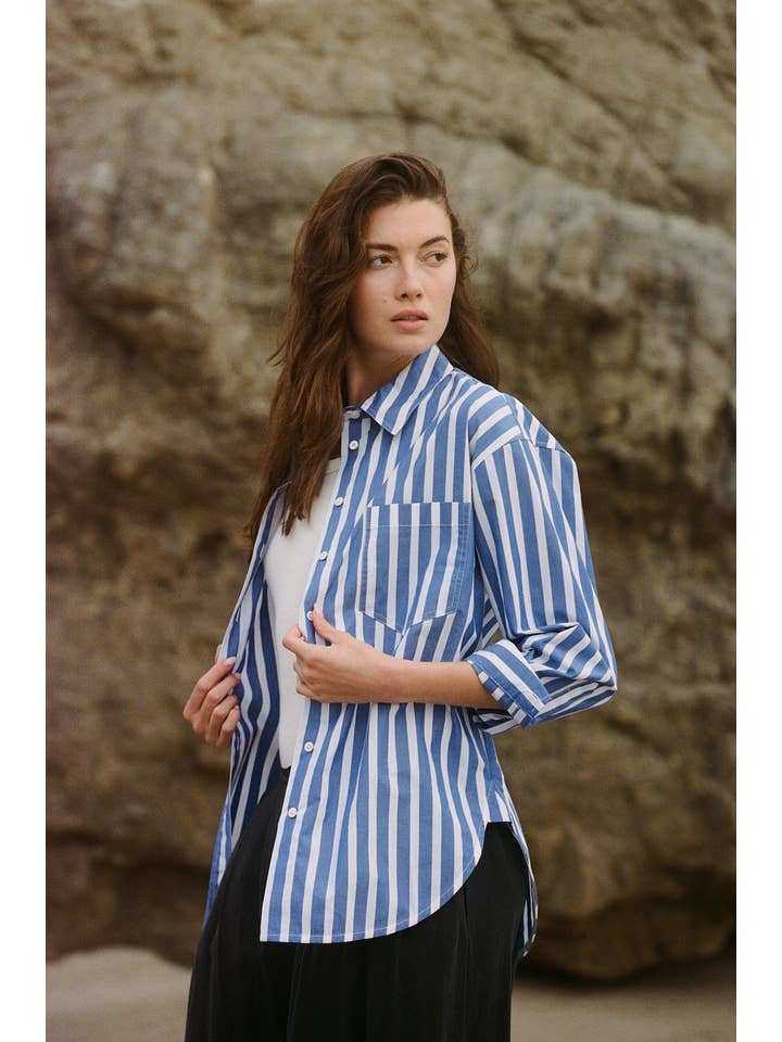 The Sylvia Shirt the essential shirt for laid-back, effortless style. A classic striped cotton buttoned shirt with a relaxed vibe and endless styling opportunities. It's the shirt that goes with everything and goes anywhere!