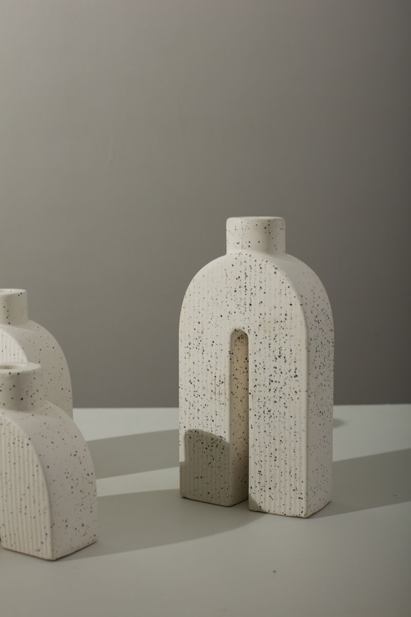 The mindfully modern Trefoil Candleholder is shaped with on-trend arches and a speckled effect in the glaze. Designed to hold a taper candle, it's perfect for completing your next event tablescape or decorating around your home.